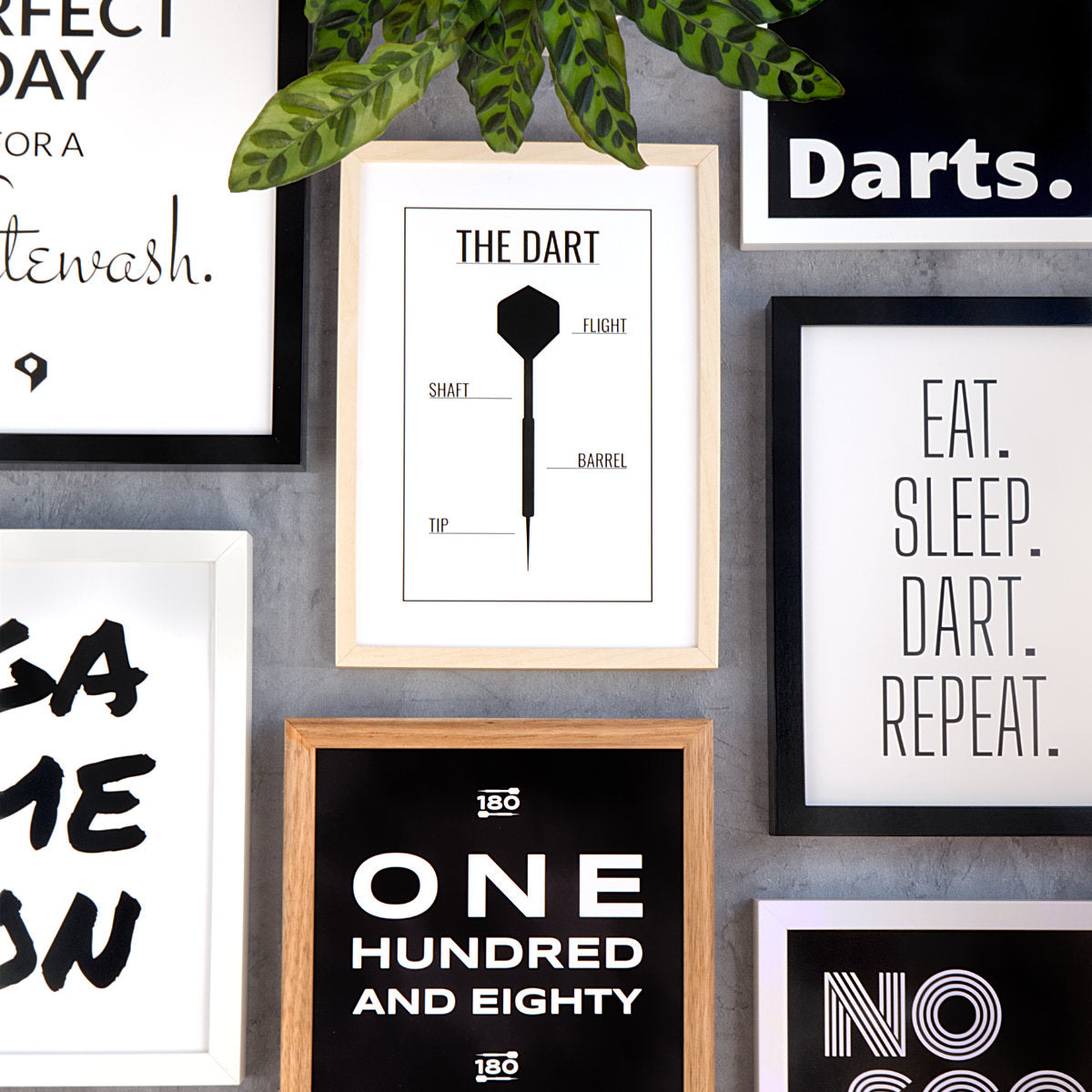 Lass Dich inspirieren von unseren stylischen und zeitlosen Posterideen zum Thema Darts. Wir stehen für hochwertige und cleane Designs. Unsere Dart Poster sind mit viel Liebe zum Detail gestaltet und lassen sich perfekt kombinieren. Egal ob Dart Finish Poster, 9 Dart Finish oder coole Dart Sprüche - wir bieten für jede Dartecke das passende Dart Poster.