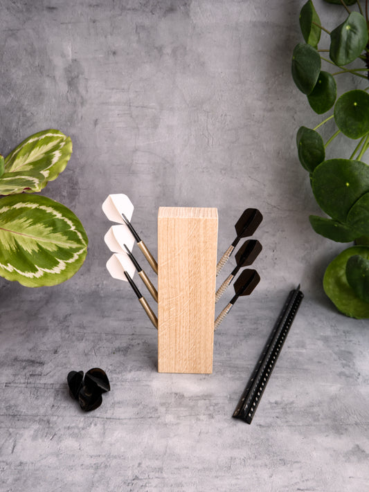 Entdecke unser stylisches Dart Zubehör! Egal ob Dartständer, Pfeilehalter oder Dartpfeil Ständer! Unsere Dartpfeilhalter sind in verschiedenen Materialien erhältlich und für verschieden viele Darts konzipiert. Egal ob 3, 6 oder 12 Dartpfeile - Holz, Stein oder Industrial - hier findest Du in jedem Fall Deine passende und einzigartige Dart Station!