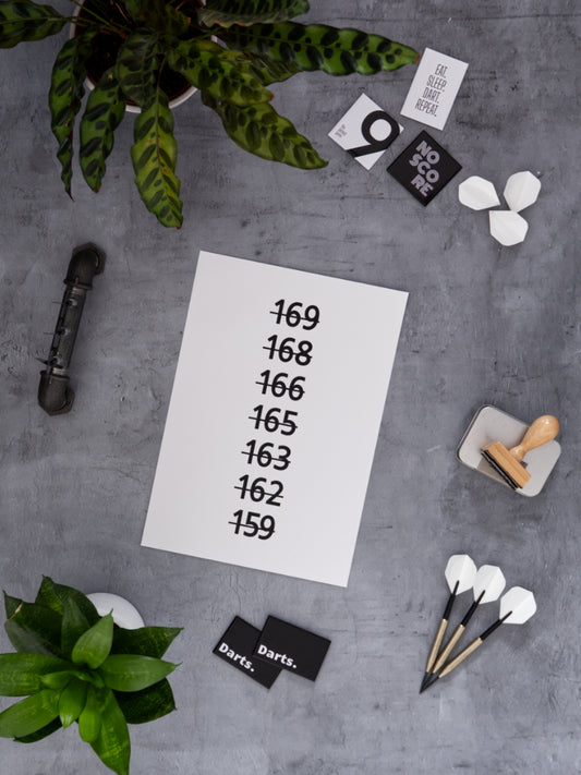 Lass Dich inspirieren von unseren stylischen und zeitlosen Posterideen zum Thema Darts. Wir stehen für hochwertige und cleane Designs. Unsere Dart Poster sind mit viel Liebe zum Detail gestaltet und lassen sich perfekt kombinieren. Egal ob Dart Finish Poster, 9 Dart Finish oder coole Dart Sprüche - wir bieten für jede Dartecke das passende Dart Poster.